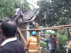 Polsek Banyuresmi Evakuasi Pohon Tumbang yang Menimpa Rumah Warga Akibat Hujan dan Angin Kencang