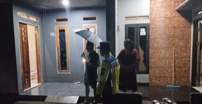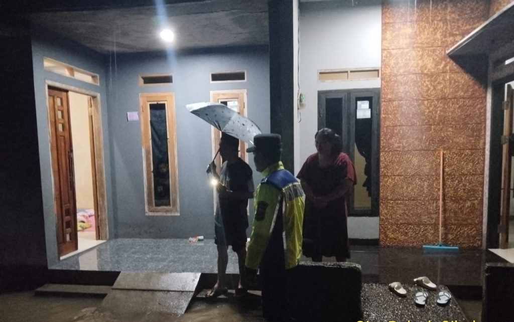 Polsek Cibalong Lakukan Mitigasi Banjir Usai Hujan Deras, Sejumlah Rumah Warga Terdampak