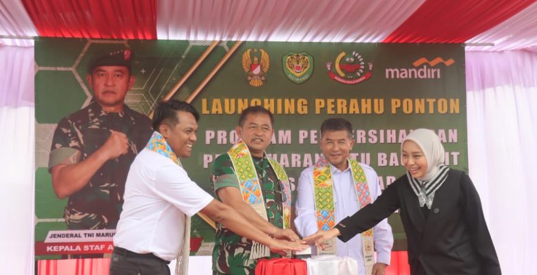 Dalam kesempatan tersebut, KASAD menyerahkan bantuan satu paket 1 poton dan 2 conveyor yang akan di gunakan untuk membersihkan perairan Situ Bagendit dari sampah dan eceng gondok.