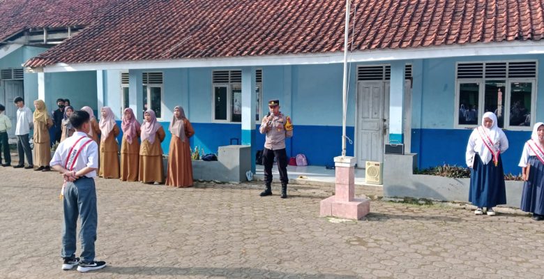 Garut – Kapolsek Leuwigoong Ipda Asep Juarna bersama Kanit Binmas Polsek Leuwigoong melaksanakan giat pembinaan kepada para pelajar dalam upacara bendera di MTS Nurul Amien, Desa Babakan Sari, Kecamatan Leuwigoong, Kabupaten Garut, Senin (29/9/2025).