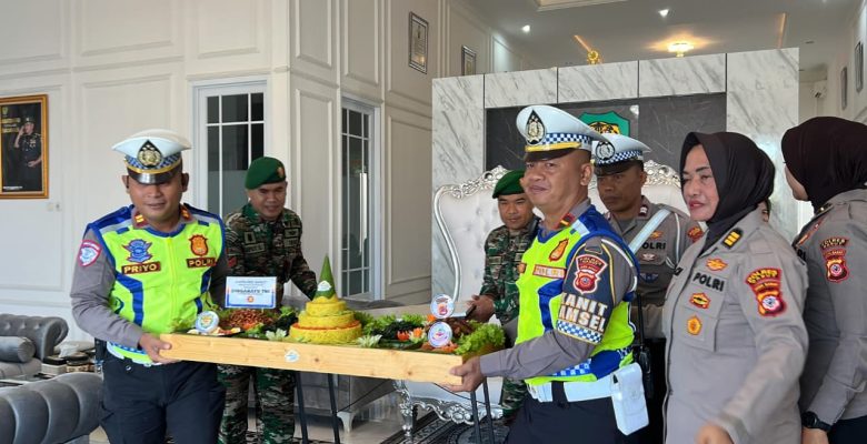 Garut – Dalam rangka memperingati Hari Ulang Tahun (HUT) Tentara Nasional Indonesia (TNI) ke-80, jajaran Polres Garut memberikan kejutan istimewa kepada Kodim 0611 Garut dengan membawa tumpeng sebagai bentuk ucapan selamat dan sinergitas TNI-Polri. Kegiatan tersebut berlangsung di Makodim 0611 Garut, pada Sabtu (5/10/2025).