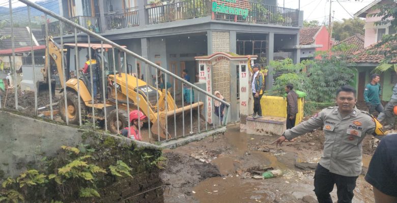 Polsek Cisurupan Bersama BPBD, Damkar, TNI, Forkopimcam dan Warga Evakuasi Material Banjir dan Longsor