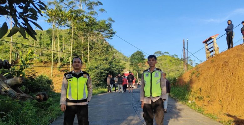 Polsek Banjarwangi Polres Garut Amankan Lokasi Tiang Listrik Tumbang