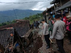 Polsek Cibatu Polres Garut Cek TKP Tanah Longsor yang Menimpa Rumah Warga